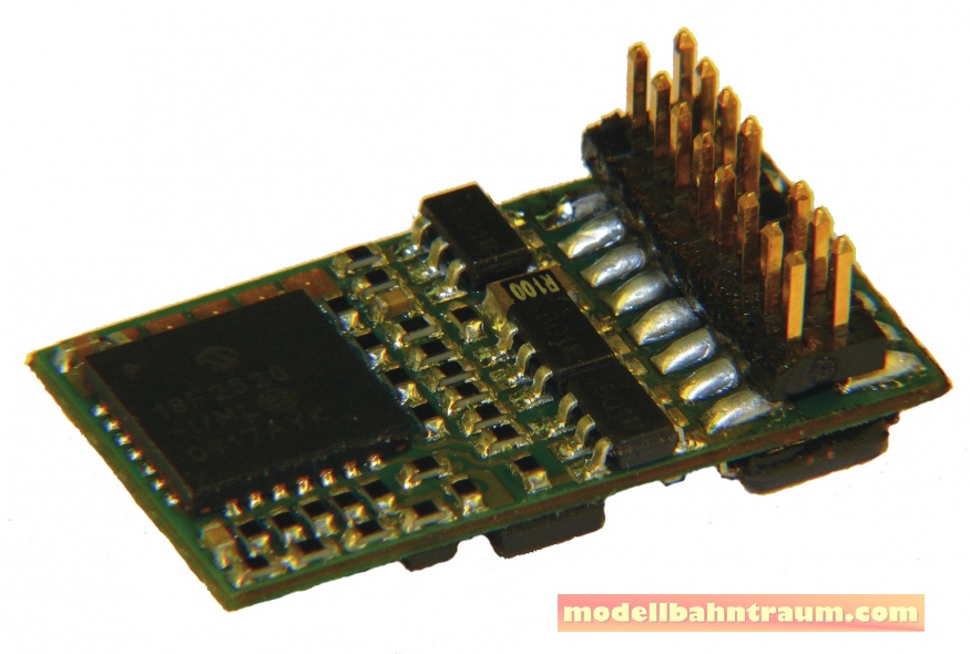 PluX16-Decoder, rückmeldefähig. Decoder mit 16-poligem Stecker; updatefähig; Multiprotokollbetrieb möglich; Motorregelung; Unterstützung von Bremsstrecken; Lokadressen programmierbar; NMRA-kompatibel; komfortable Änderung der Betriebsparameter möglich: d.h. die Lok muss nicht geöffnet werden; Überstromschutz; RailCom **