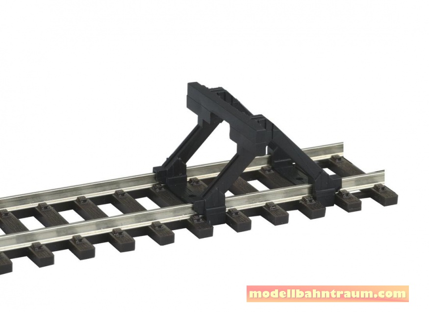 Prellbock mit Holzbohlen, beliebig auf jede gerade Schiene aufsteck- oder aufschraubbar.