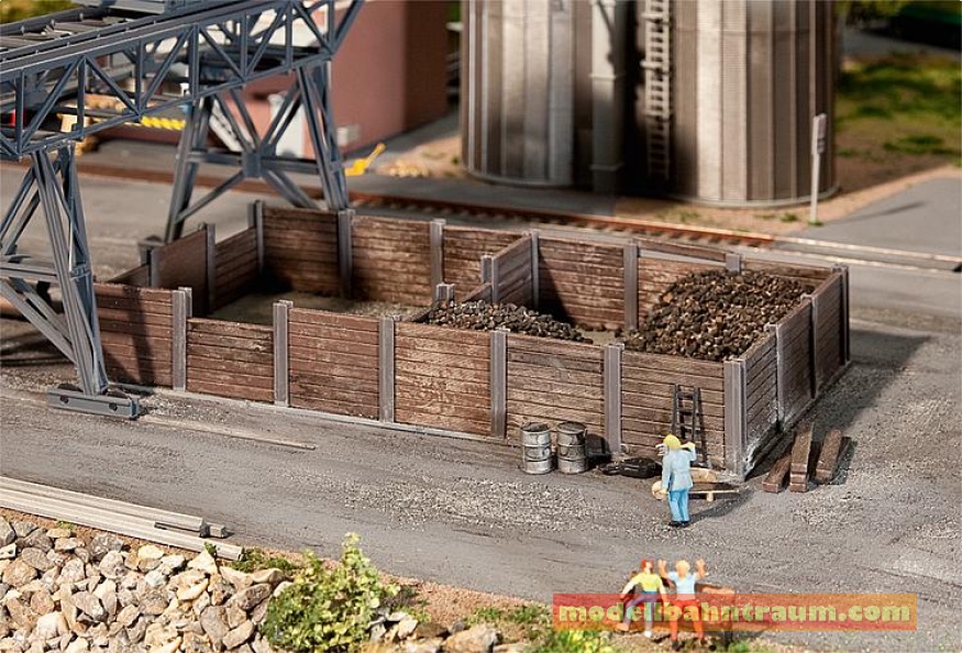 Großvolumige Bansen in Holzbauweise, in denen diverse Kohlensorten oder andere Schüttgutmaterialien gelagert werden können. Ideal für den bahnnahen Kleingewerbebereich oder im Hafenumschlagplatz. Ein Beutel mit Kohle liegt bei.