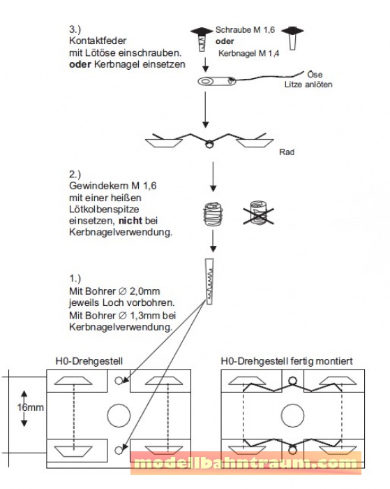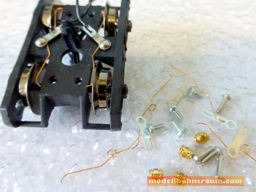 Nachrüstbare Radkontaktsätze, für 2-achsige H0-Drehgestelle, max. Achsstand 28mm (Bausatz für 10 Drehgestelle).