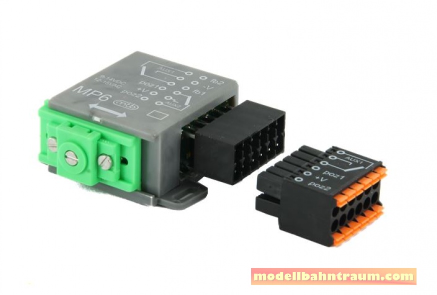 Der motorische Weichenantrieb MP6 wurde als Ersatz für herkömmliche Spulenantriebe entwickelt. Er funktioniert über zwei kurze Tastimpulse für die Endpositionen rechts und links. Er braucht Schaltspannung von 9-16 V, die dauerhaft eingeschaltet sein muss. Klassische motorische Antriebe benötigen in der Regel ein kontinuierliches Eingangssignal für den gesamten Stellvorgang. Der MP6 benötigt nur einen kurzen Schaltimpuls von maximal 40 ms zum Starten des Stellvorganges und er erreicht seine Endlage selbstständig. Es gibt zwei Impulseingänge: POS1 und POS2. Bei Schließen der Eingänge zur Spannung –U (die gemeinsame Null), fängt die Bewegung an. Die Elektronik sorgt für die Endschaltung auch nach dem Ablauf des Impulses.