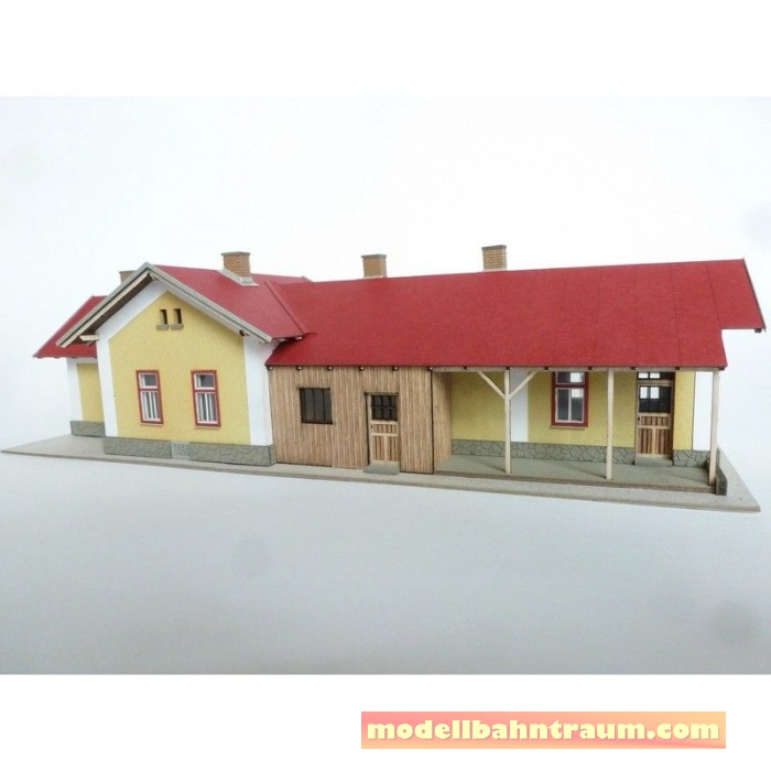 Es handelt sich um das Abfertigungsgebäude Malá Hra¨tice. Der Baukasten wurde nach der Vorgabe des Herrn Dalecký – Modely.biz entworfen. Auf diesem Bahnhof befindet sich auch eine Aufstellung verschiedener Typen der Schuppen, die Sie auch in unserem Angebot finden. Wer einen vollständigen Bahnhof vorsieht, dem empfehlen wir auch das Lagerhaus aus unserer Warenpalette zu ergänzen, das dort eben auch noch bis jetzt steht.