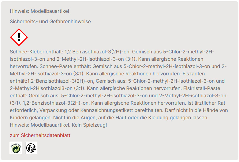 - Start-Set Schneeflocken beinhaltet: 50 g Schnee-Kleber, 25 g Schneeflocken und Gras-Spritzdose (Art.-Nr. 07065),