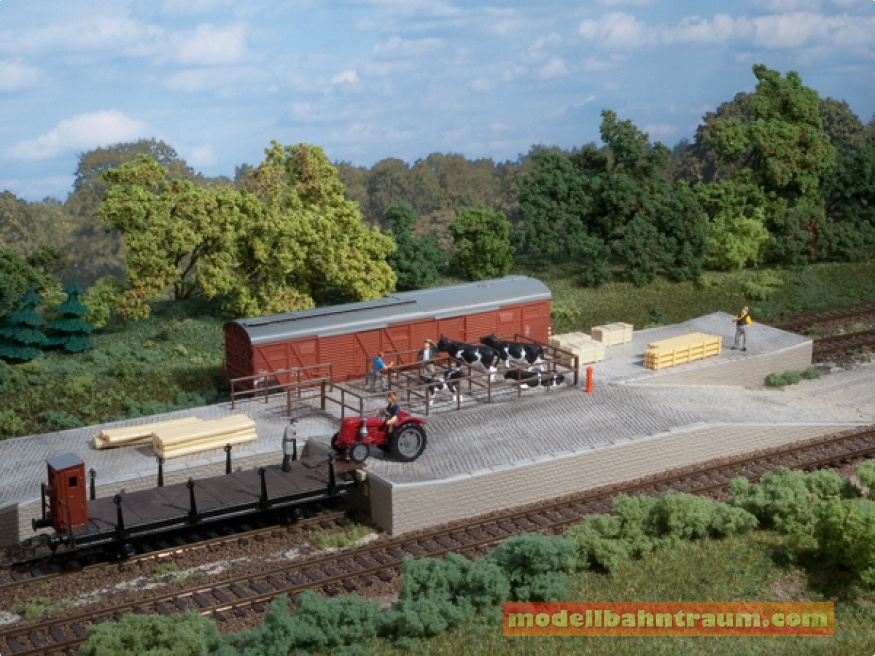 Ein äußerst variabel einsetzbarer Bausatz. Für Ladegut aller Art. Mit vier rechteckigen Rampen je 119 x 70 x 18 mm, einem Kopframpenteil 70 x 26 mm und zwei Auffahrten 119 x 70 mm in Pflastersteinstruktur.