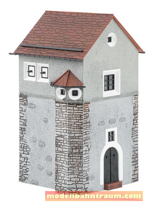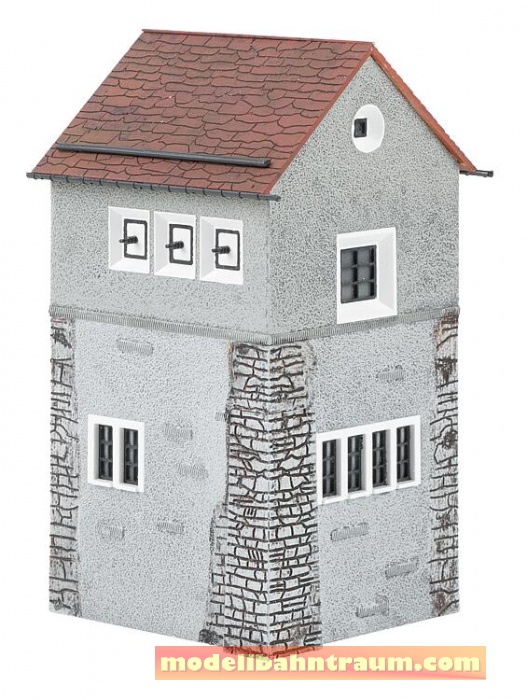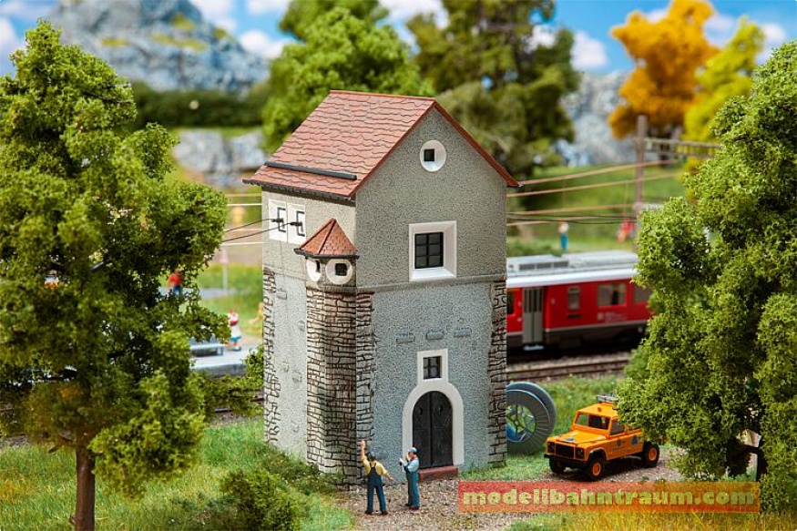 Elektrifizierung der Rhätischen Bahn. Gemauerter Schaltturm mit eingelassenen Isolatoren und einem Satteldach nach einem um 1913 erbauten Originalvorbild in Ardez im Unterengadin. Ideale Ergänzung zum Bahnhof »Ardez«, Art. 110144.