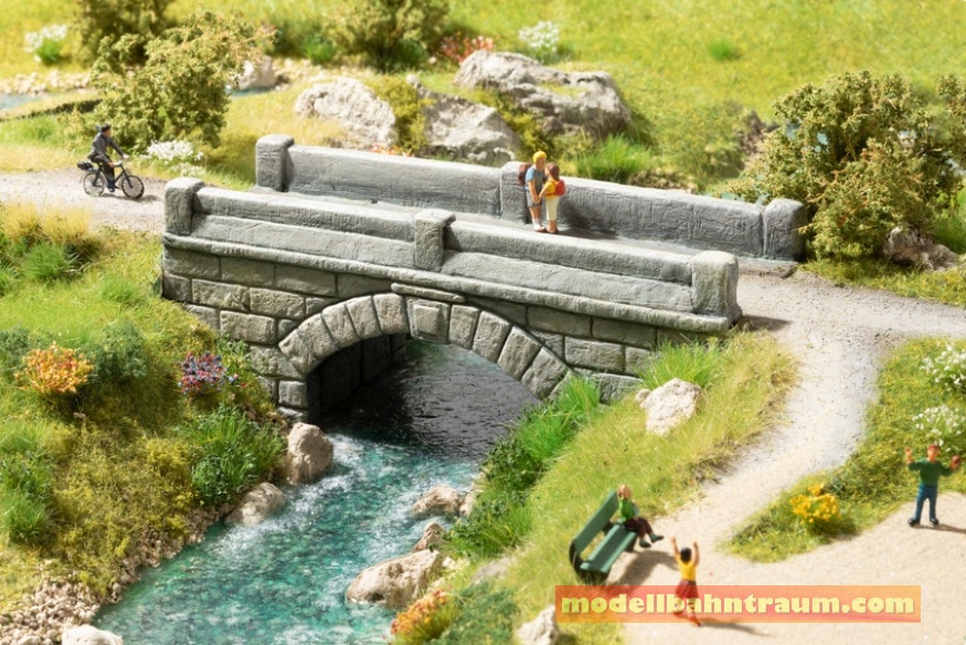 Bäche, Flüsse, Tobel und Schluchten prägen das Landschaftsbild. Brücken ermöglichen seit Urzeiten wichtige Handels- und Verkehrsverbindungen und bringen Menschen zusammen. Unser Team hat sich dieses Jahr den kleinen Brücken angenommen. Diese unauffälligen Bauwerke queren Bäche, kleine Flüsse, Bewässerungsgräben oder Tobel und sind in jedem Dorf und in jeder Stadt zu finden. Die Steinbrücken können aber auch in der freien Natur eingesetzt werden, um auf Wander- und Güterwegen Tobel und Wildbäche zu überqueren. Alle Brücken werden aus dem bekannten NOCH Struktur-Hartschaum hergestellt, der hochrealistische Oberflächenstrukturen garantiert. Die Bauwerke sind dennoch sehr leichtgewichtig und gut weiter zu bearbeiten.