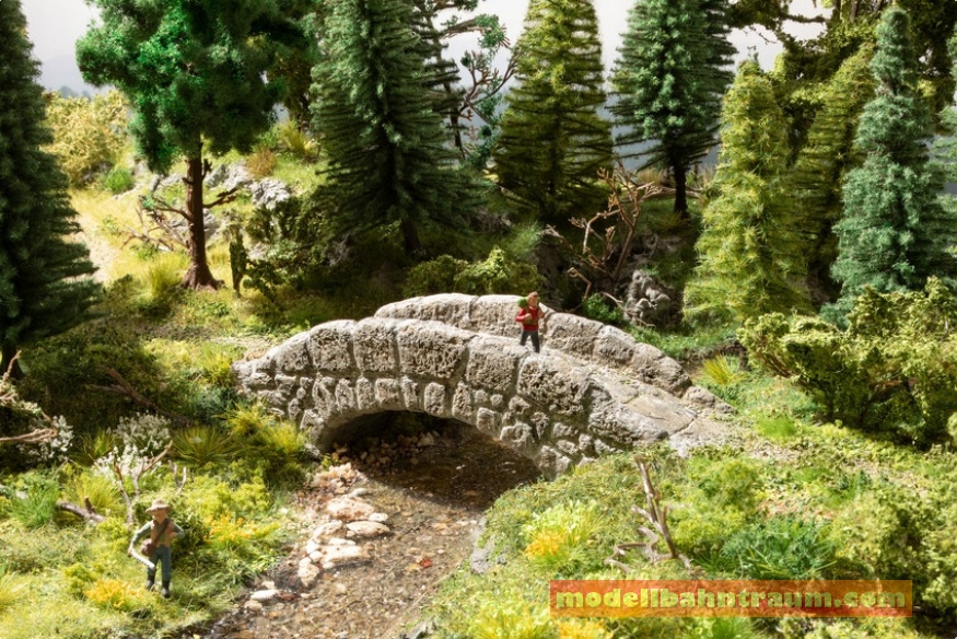 Bäche, Flüsse, Tobel und Schluchten prägen das Landschaftsbild. Brücken ermöglichen seit Urzeiten wichtige Handels- und Verkehrsverbindungen und bringen Menschen zusammen. Unser Team hat sich dieses Jahr den kleinen Brücken angenommen. Diese unauffälligen Bauwerke queren Bäche, kleine Flüsse, Bewässerungsgräben oder Tobel und sind in jedem Dorf und in jeder Stadt zu finden. Die Steinbrücken können aber auch in der freien Natur eingesetzt werden, um auf Wander- und Güterwegen Tobel und Wildbäche zu überqueren. Alle Brücken werden aus dem bekannten NOCH Struktur-Hartschaum hergestellt, der hochrealistische Oberflächenstrukturen garantiert. Die Bauwerke sind dennoch sehr leichtgewichtig und gut weiter zu bearbeiten.