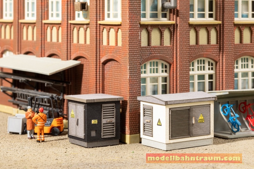 Die Laser-Cut minis "Transformator-Stationen" in der Spurweite H0 eignen sich ideal, um gerade Landschaften noch individueller nachzugestalten. Die Bauarbeiter sorgen für eine für jeden ausreichende Stromversorgung. Hier ist viel zu tun, damit auch wirklich alle Haushalte genug Strom haben.