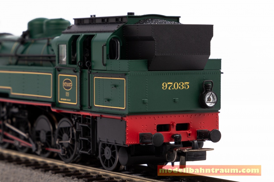 Neuheit 2022: Bei dem Modell wurden konstruktiv die landestypischen Details und Änderungen gegenüber Artikel #50650 berücksichtigt! Hierzu zählen unter anderem der geänderte Kamin, die landestypischen Front- und Rückleuchten sowie der belgische Kohlekastenaufsatz. Der Einbau eines Digitaldecoders sowie die Nachrüstung von Sound und Dampf sind problemlos möglich.