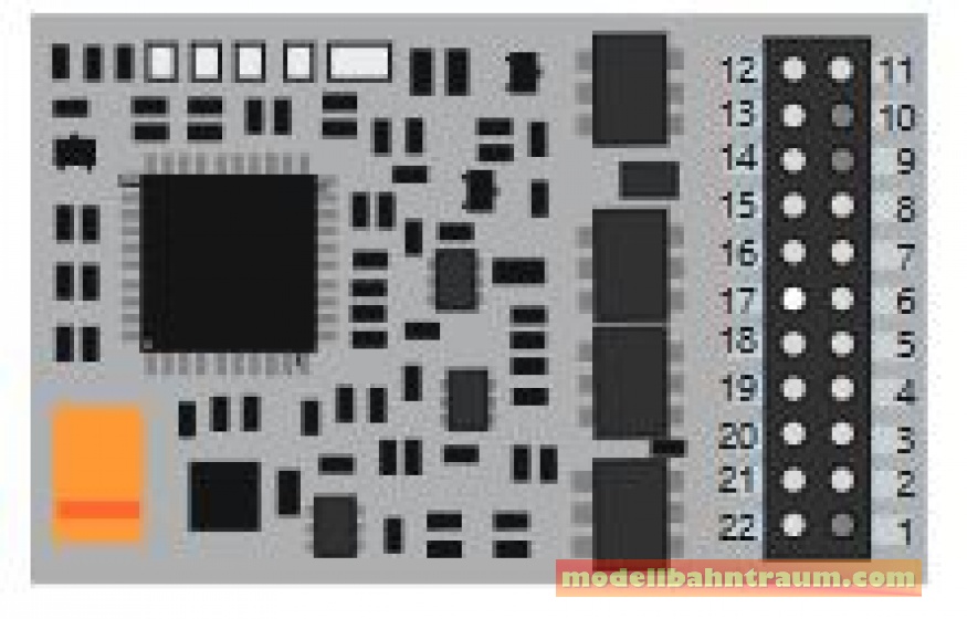 Die Pin-Belegung des Typs entspricht der bei ZIMO Decodern üblichen Konvention (wie z.B. MX634D oder Sound-Decoder MX644D)MX6 6 D7 V