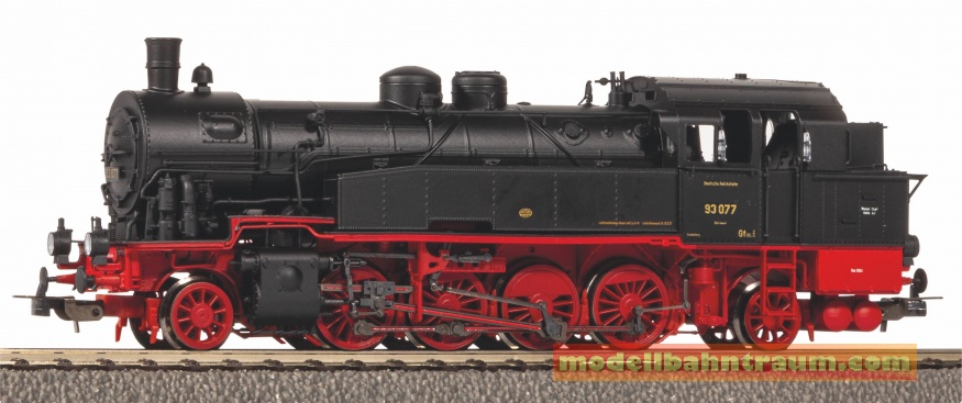 Neuheit 2023: 2023 präsentiert PIKO die formschöne BR 93.0 auch in der Ausführung der Deutschen Reichsbahn-Gesellschaft in Epoche II. Bei der Modellumsetzung wurde besonders viel Wert auf die Wiedergabe der spezifischen Besonderheiten des Vorbildes gelegt. Neben den Stangenpuffern fallen besonders die Nachbildungen der Gaslampen ins Auge. Die Handgriffe an Front und Führerhaus sind, ebenso wie die vielen Leitungen, freistehend angebracht und machen die BR 93.0 der DRG zu einem wahren Schmuckstück. Dank moderner PluX22-Schnittstelle ist die Nachrüstung eines Digital-Decoders im Handumdrehen möglich. Zudem ist die Lok für die Nachrüstung mit Sound sowie den Einbau eines Dampfgenerators vorbereitet.