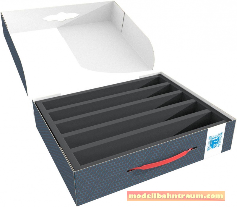 Ordentlich aufbewahrt und sicher transportiert – Feldherr Full-Size Lagerboxen inklusive Schaumstoffeinlagen für Modelleisenbahnen in Spur H0 sind Ihre Modelle sicher.