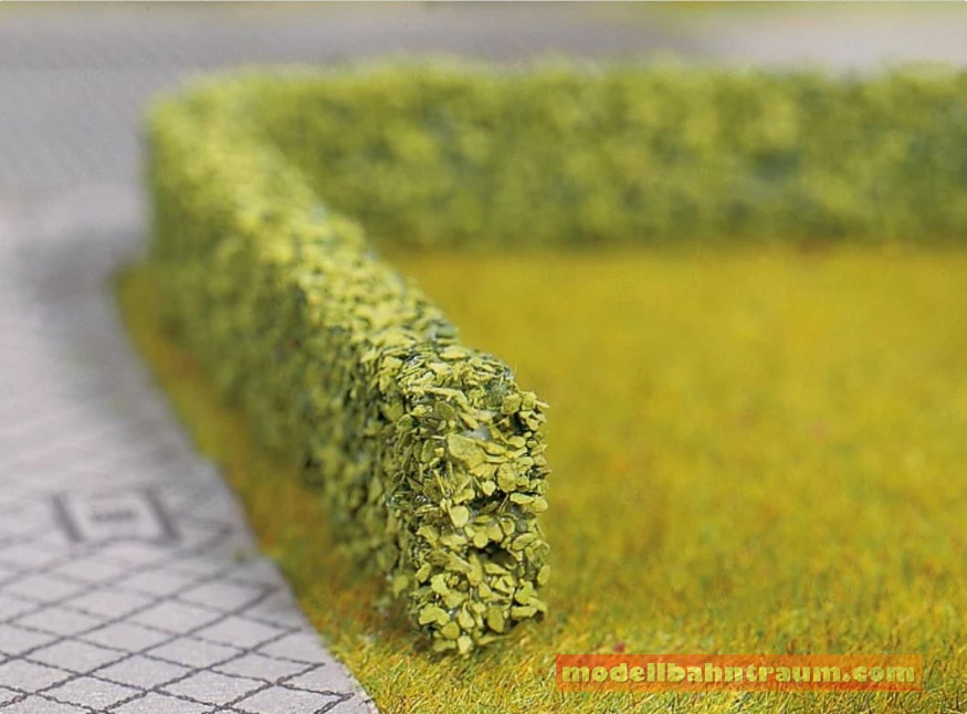 Die "Modellhecken" geben jeder Landschaft, sowohl in der Realität als auch auf der Modelllandschaft ein idyllischeres Aussehen. Sowohl in ländlichen als auch in städtischen Szenerien prägen Hecken das Straßenbild ganz entscheidend mit. Sie können ganz individuell eingesetzt werden. Ob am Wohnhaus zur Abgrenzung zum Nachbar, in Stadtparks, in Wohnsiedlungen oder einfach nur im eigenen Garten. Gestalten Sie mit den "Modellhecken" wirklichkeitsgetreue Landschaftsszenen im Handumdrehen nach und setzten Sie hochwertige Details auf Ihrer Modelllandschaft. In wenigen Schritten erhält man eine liebevoll nachgestaltete Szene in der Stadt oder auf dem Land mit grünen Hecken, die jedes Landschaftsbild verschönern.