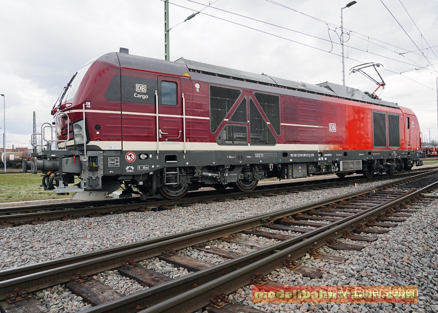 Vorbild: Zweikraftlokomotive BR 249 (Vectron Dual Mode light) mit Sonderbeklebung der DB Cargo AG. Aus der Vectron-Produktfamilie von Siemens. Betriebsnummer 249 001. Betriebszustand 2024.