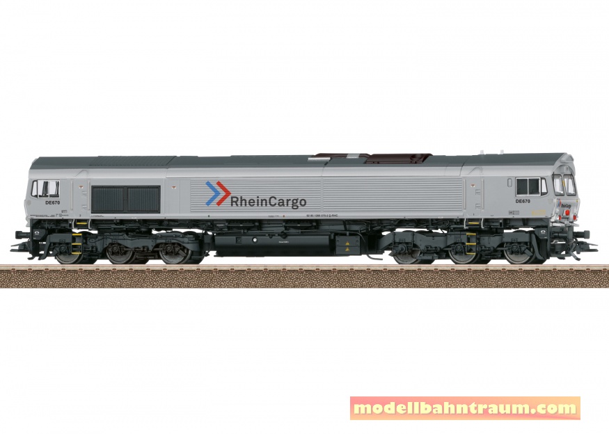 Vorbild: Dieselelektrische Güterzuglokomotive JT42CWR, besser bekannt als Class 66. Diesellokomotive der RheinCargo GmbH & Co. KG, Neuss. Betriebszustand 2022.