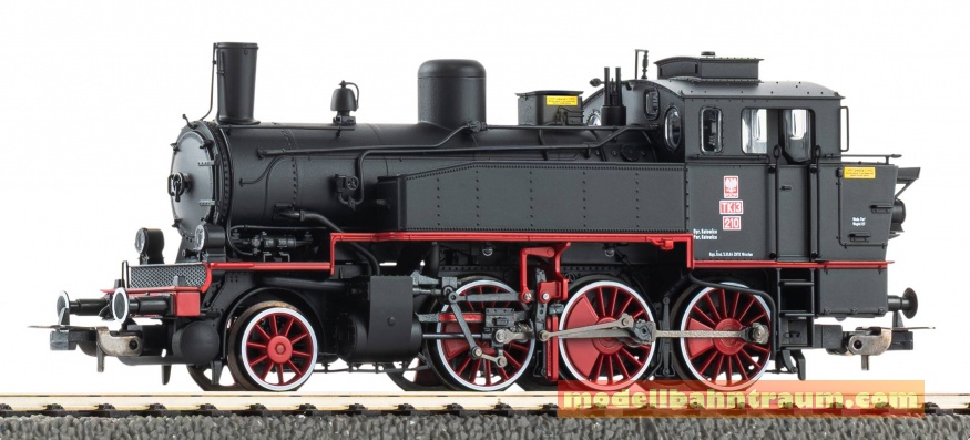 Neuheit 2025: Dampflokomotive T 9.3 in der Ausführung als TKi3 der PKP in Epoche III.Konstruktiv lässt die Expert-Dampflok kaum Raum für Wünsche offen und berücksichtigt alle baulichen und optischen Besonderheiten der Vorbildmaschine, wie PKP Lampen, vergrößerter Kohlekasten, die originalgetreue Leitungsführung am Kessel oder feine Speichenräder aus Metalldruckguss in typischer PKP Farbgebung.Durch die Nachrüstung eines PIKO Digital-Decoders können die Beleuchtungen im Führerstand und Fahrwerksbereich geschaltet werden. Zudem simuliert eine ebenfalls digital geschaltete, flackernde LED im Bereich der Feuerbüchse die rot glimmenden Kohlen. Alle Beleuchtungen, inklusive des in Fahrtrichtung wechselnden Lichtwechsels sind in moderner, wartungsfreier LED-Technik ausgeführt. Das PIKO Modell ist zudem für die Ausstattung mit einem Fahrzeugsound vorbereitet.