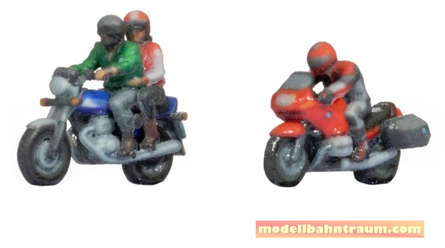 Mit den „Motorradfahrer“-Figuren von NOCH setzen Sie dynamische Akzente in Ihrer Modelllandschaft. Dieses Set enthält einen Fahrer mit Sozius sowie einen sportlichen Fahrer auf einem Tourenmotorrad. Die detaillierte Gestaltung der Figuren und Fahrzeuge bringt Leben und Bewegung auf Ihre Modellstraßen. Die Figuren sind perfekt für Szenen auf Landstraßen, in der Stadt oder bei Tourenausflügen geeignet. Dank moderner 3D-Drucktechnologie und hochwertiger Handbemalung sind die Miniaturen besonders realitätsnah und ein echtes Highlight für Modellbau-Liebhaber!