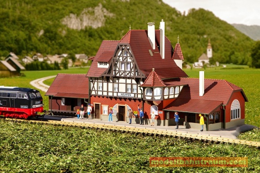 Neuheit 2025: Das detailverliebte Modell lässt das markante Jugendstil-Gebäude aus der idyllischen Stadt Neuffen in Baden-Württemberg im Kleinen lebendig werden. Feine Fachwerknachbildungen, kleine Turmdächer und die prägnanten, grünen Dachrinnen verleihen ihm seinen unverwechselbaren Charme und bringen eine nostalgische Atmosphäre auf jede Gartenbahnanlage.
