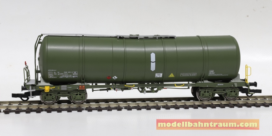 4-achsige Kesselwagen mit der Bezeichnung Zacns und einem Fassungsvermögen von 88 m3, die für den Transport von raffinierten Kraftstoffen verwendet werden.