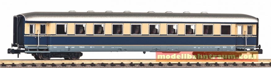 Neuheit 2021: Druckvariante in Epoche III der ÖBB. PIKO hat sich bei der Neukonstruktion der beschürzten Eilzugwagen der Bauart 42 einer Herausforderung gestellt und bravourös bestanden. Die eleganten Fahrzeuge werden in der Baugröße N vortrefflich widergegeben und schließen eine große Lücke im Fahrzeugpark des Maßstabs 1:160. Das Gehäuse überzeugt durch scharfe und präzise Gravuren, die besonders an den Drehgestellen und im Türbereich eine angenehm plastische Wirkung entfalten und so das stimmige Erscheinungsbild entscheidend mitprägen. Das Oberflächenfinish der Wagen besteht aus einer hochfeinen Lackierung, der eine absolut konturenscharfe Bedruckung aufgesetzt wurde. Für zusätzliche Stimmung beim Anlageneinsatz der Wagen sorgt optional eine LED-Innenbeleuchtung der Wagen, sie kann mit wenigen Handgriffen nachgerüstet werden.