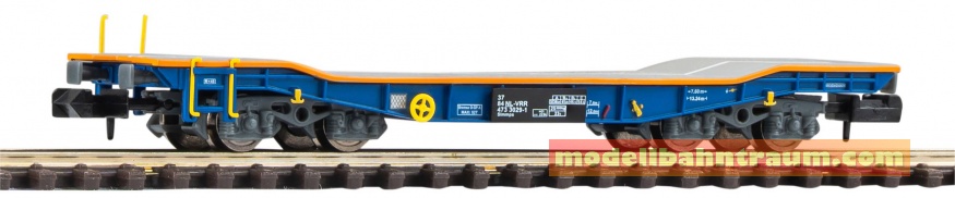 Das PIKO N-Modell des Schwerlastwagens der VolkerRail überzeugt durch eine komplette Neukonstruktion mit exzellenter Detailtreue in Form, Farbgebung und Bedruckung. Fein gravierte Drehgestelle, Kurzkupplungskinematik sowie abnehmbare und verstellbare Keile garantieren realistischen Anlagenbetrieb. Praktische ein- und ausziehbare Handgriffe runden das Modell ab.