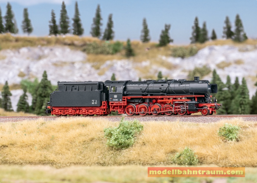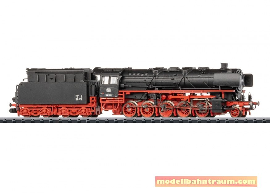 Vorbild: Schwere Güterzug-Dampflokomotive Baureihe 44, mit Öl-Tender der Einheitsbauart 2´2´T34 der Deutschen Bundesbahn (DB). Schwarz/rote Grundfarbgebung. Führerhaus mit zwei seitlichen Fenstern, mit Witte-Windleitblechen der Regelausführung, Vorlauf-Radsatz mit Speichenrädern, ohne Rauchkammer-Zentralverschluss, mit Indusi-Magneten beidseitig. Lok-Betriebsnummer 44 1315. Restaurierte Lokomotive beim Märklineum im historischen Betriebszustand um 1963/64.