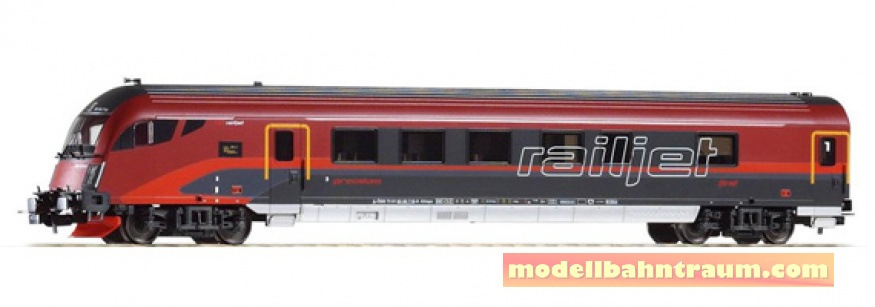 Farbvariante des Steuerwagens mit aktueller Beschriftung. Der Steuerwagen besitzt einen fahrtrichtungsabhängigen Lichtwechsel und bildet mit den PIKO Railjet-Personenwagen eine harmonische Einheit, die zum Blickfang auf jeder Modellbahnanlage wird. Ep. VI